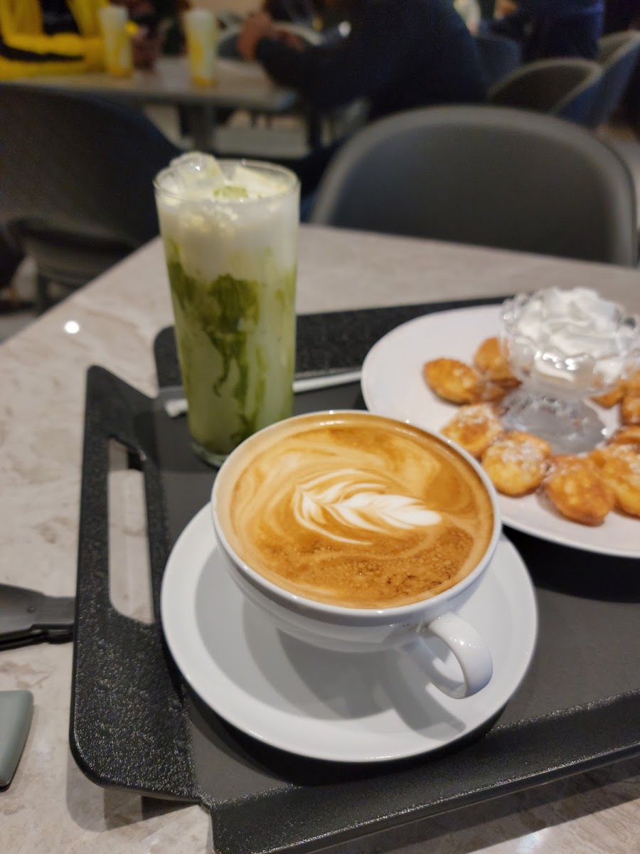 vibes are always great here. great spot to chill and study. all the desserts and drinks and other food items all bussin! highly recommend the dark mocha latte hot if you aren’t a coffee person! they also have tea. great for friend groups and teaaaa time.