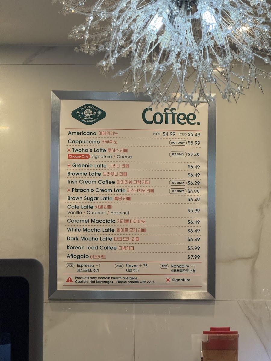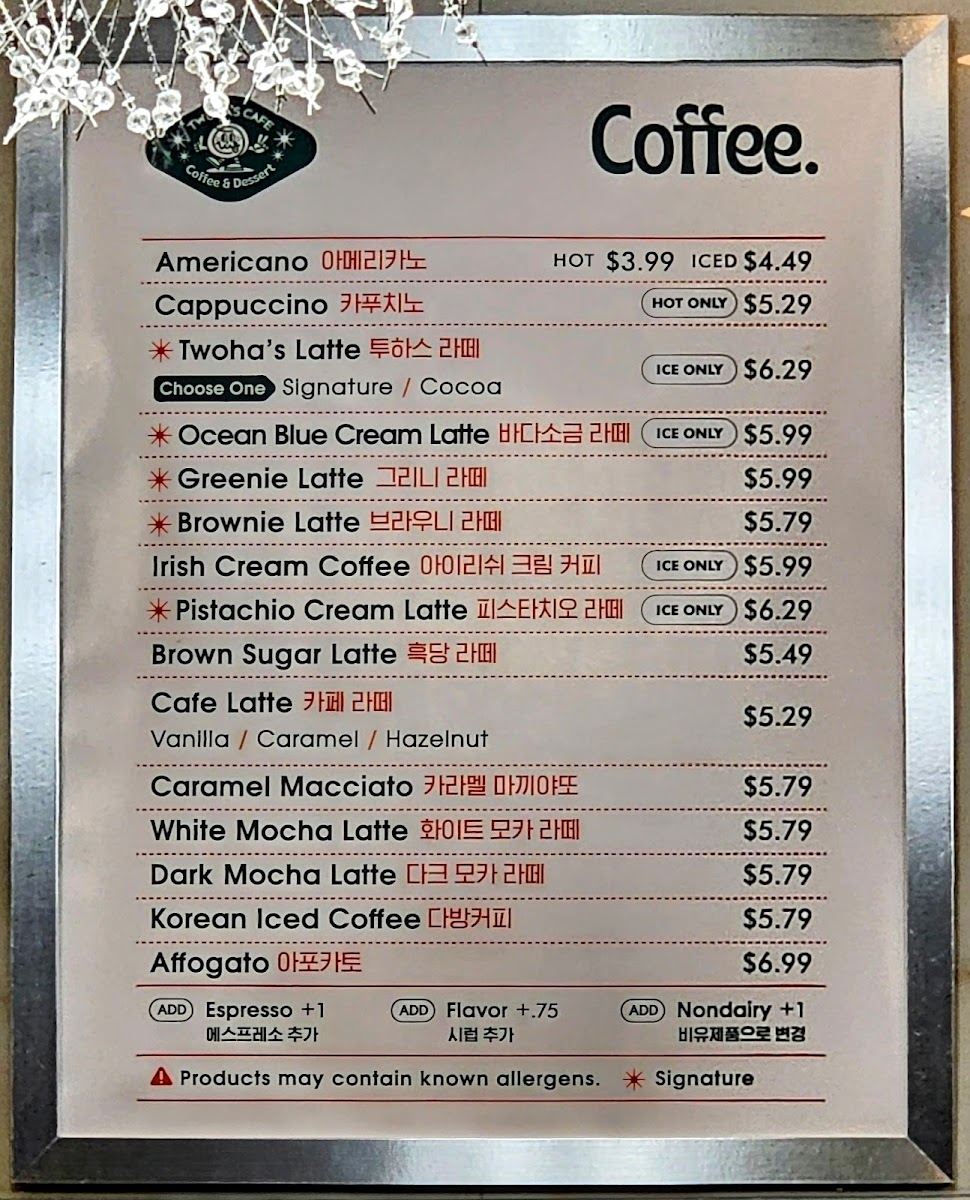 TwoHa's Cafe Menu